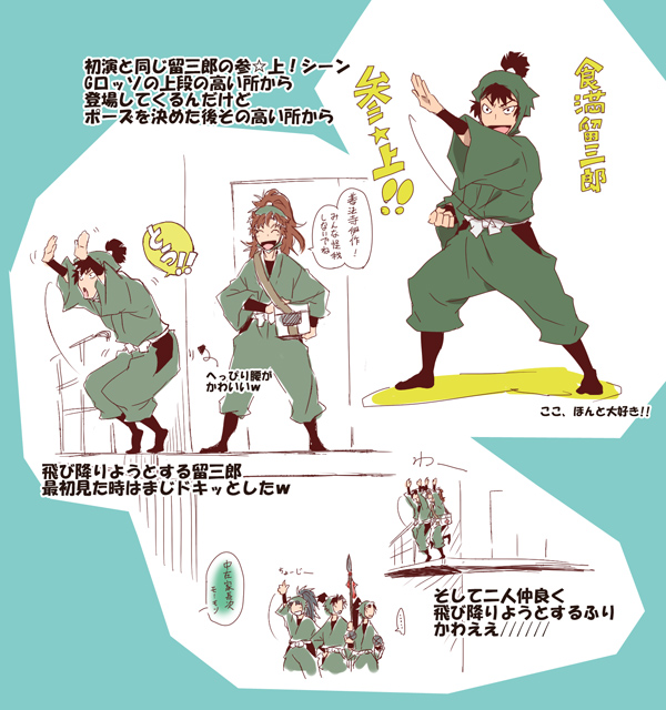 そんなあきこへの心配は新メンバーの安達伊作だった訳ですが、練習中ふんどしでの戦闘シーンで持ってる褌を踏んでこけたそうです。それを見て「伊作だー!!」って安心したそうでw
